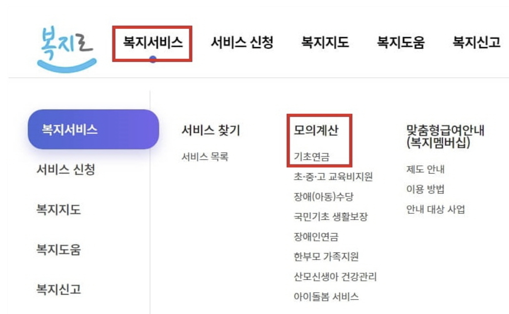 기초연금 모의계산 방법
