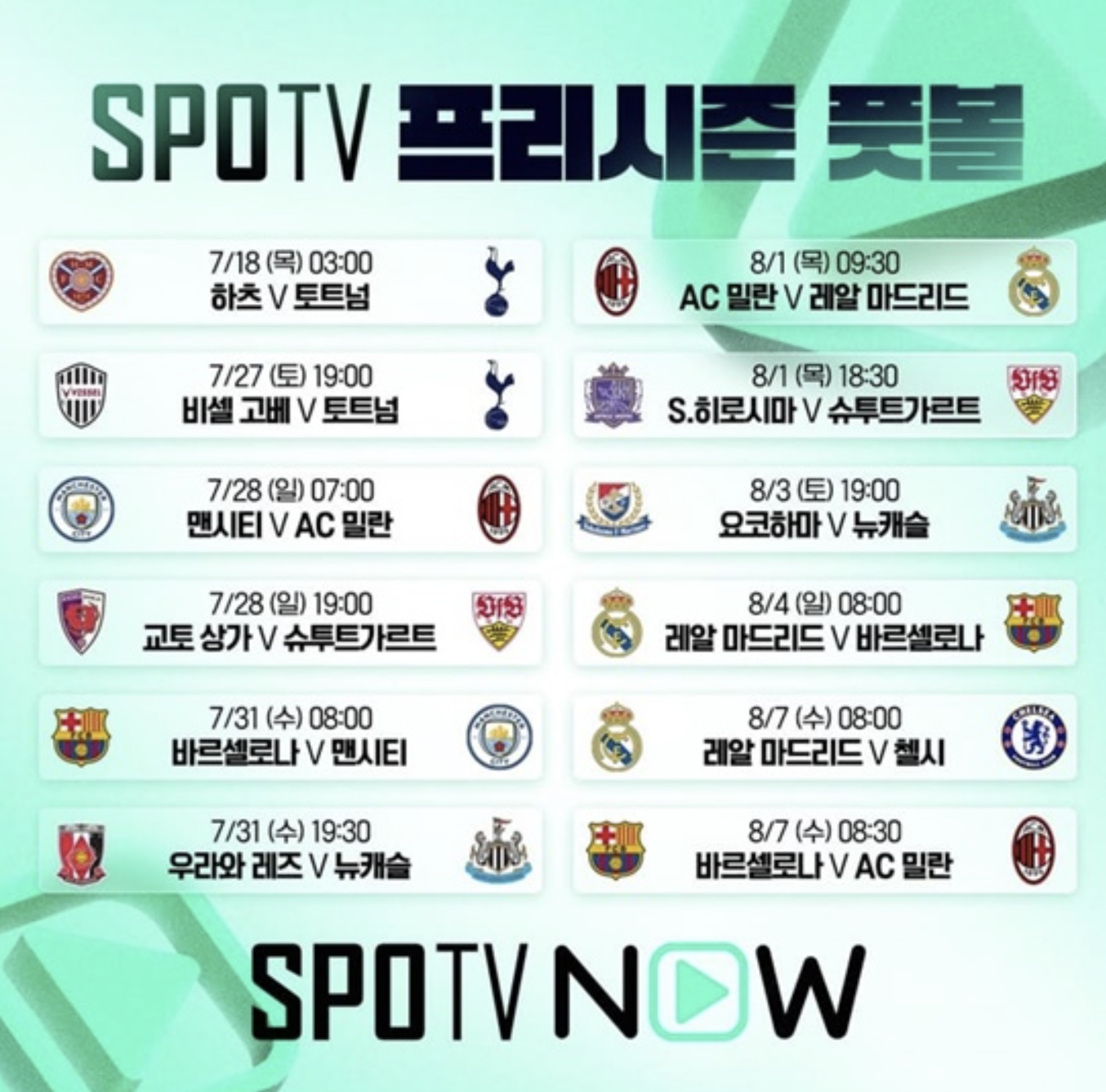 이외에도 프리시즌의 일정은 하단을 참고 하시기 바랍니다.