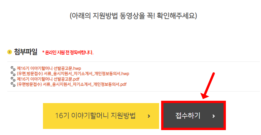 4.스크롤을 내려 제일 하단에 접수하기를 클릭합니다
