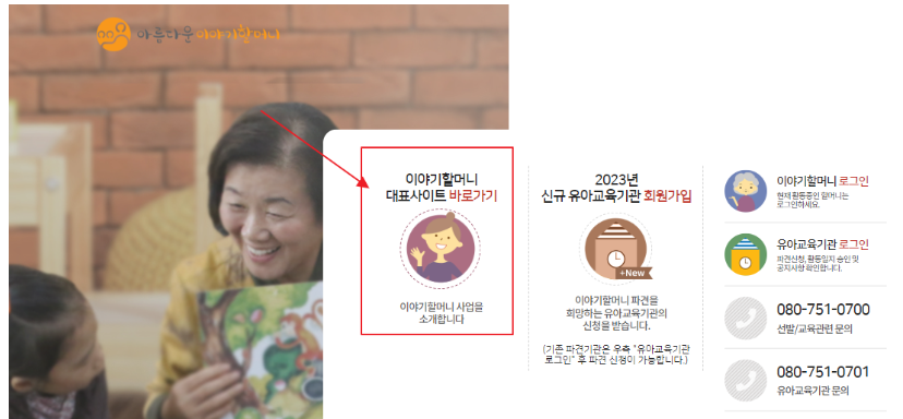 2. 메인페이지에 이야기할머니 대표사이트 바로가기를 클릭합니다.