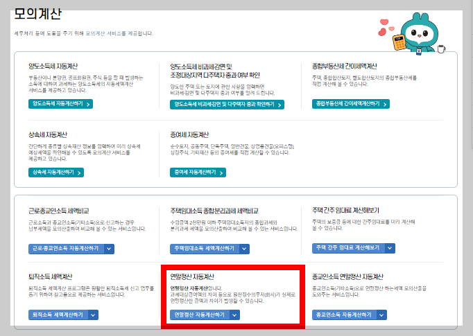 2) 모의계산 화면에서 중간에 연말정산 자동계산 하기 클릭