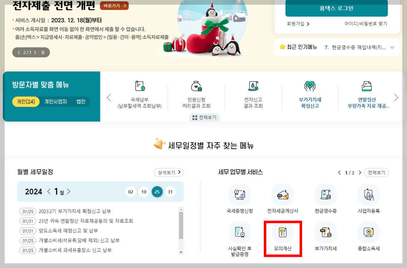 로그인-세금종류별 서비스 - 세금 모의계산
