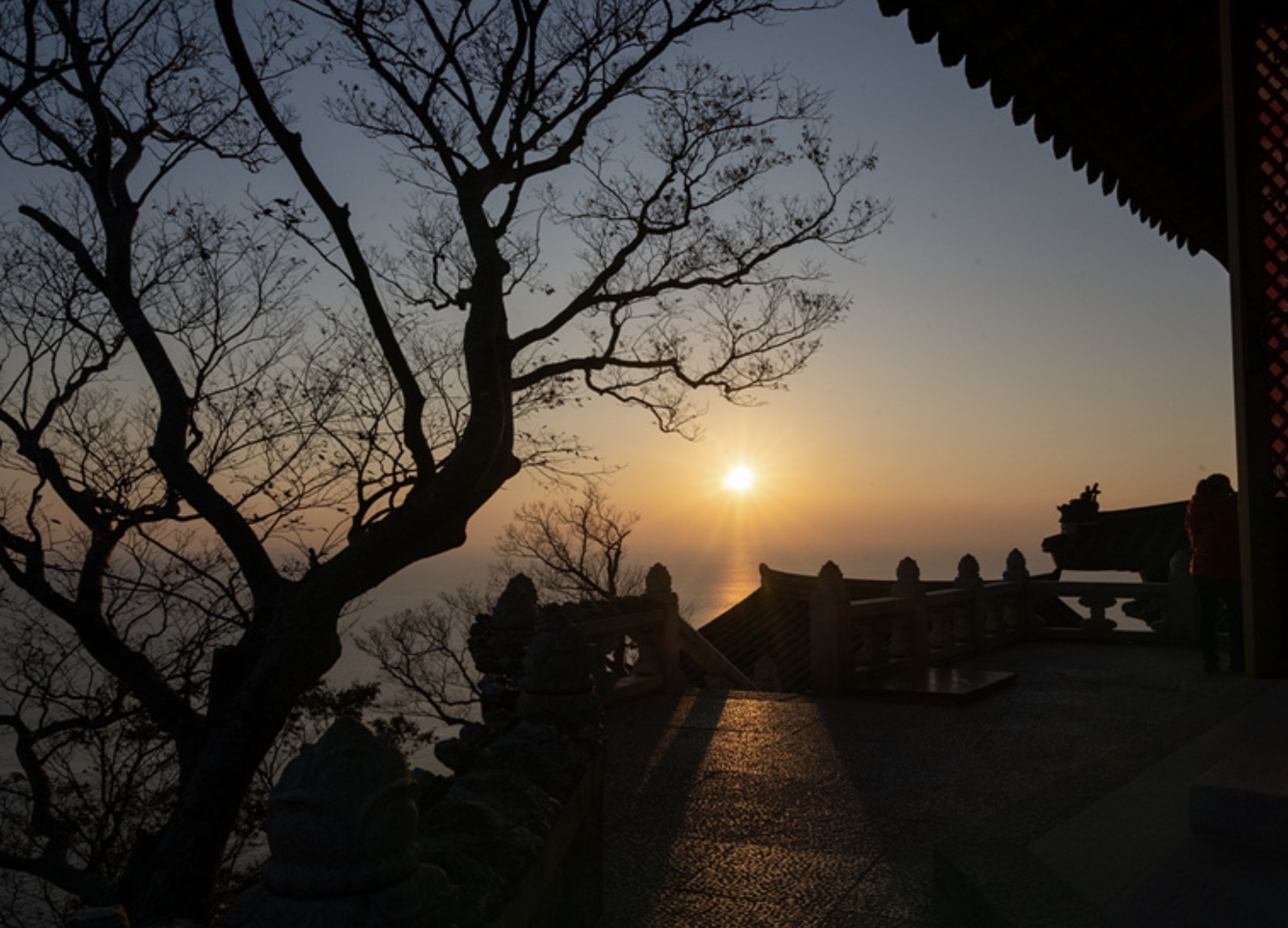 전국 4대 해동이 명소 가운데 하나로 꼽히는 여수의 향일암에서 해맞이를 볼 수 있다.