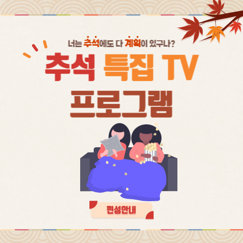 한가위 추석, 가족과함께 오손도손 모여앉아 간식도 즐기면서 추석특선프로그램 보시고 행복하게 보내세요!