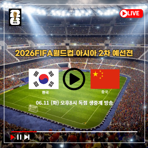 ✅2024년 6월 11일 화요일 저녁8시 서울월드컵 경기장에서 한국과 중국의 축구 경기가 진행됩니다.
