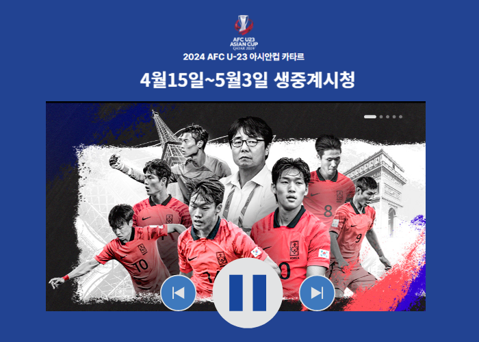 10회 연속 올림픽 본선티켓을 노리는 황선홍호의 생생한 축구경기를 위버튼을 이용하시어 생중계로 즐겨보시기 바랍니다.