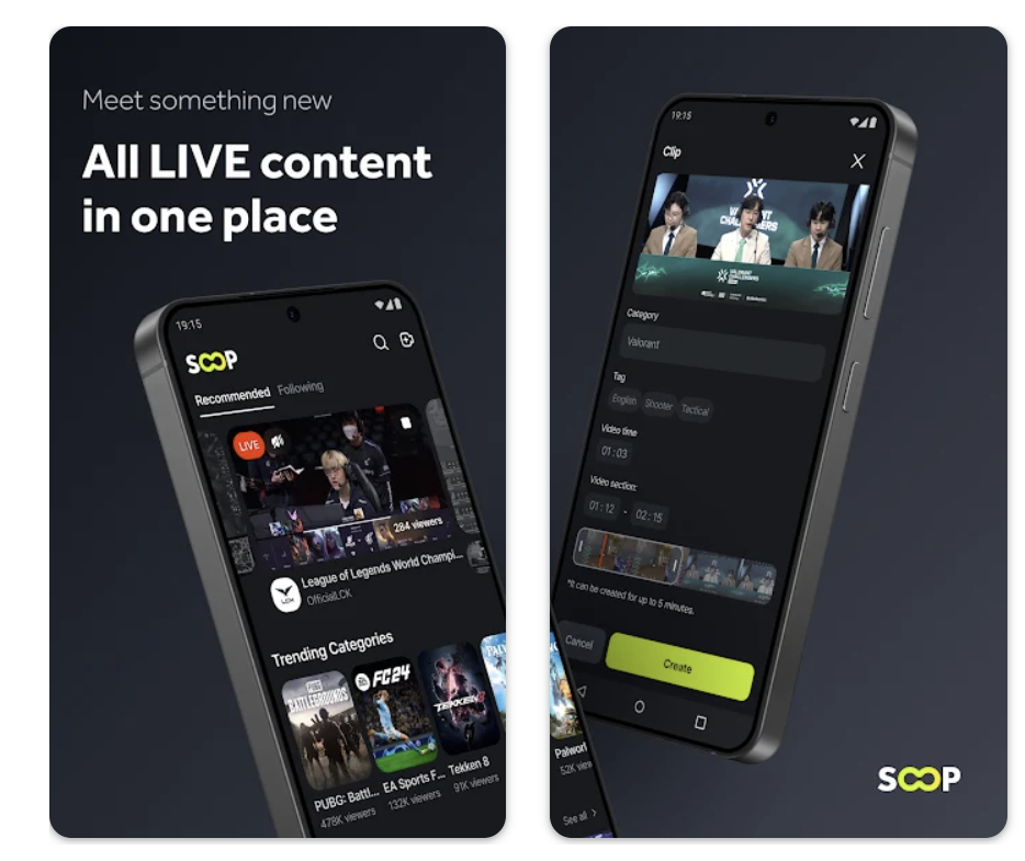 SOOP은 라이브 스트리밍 플랫폼 아프리카 TV에서 스포츠 중계 콘센츠를 선보이고 있는 다양한 스트리머들이 생중계에 나서, 유저들과 실시간으로 채팅하고 소통하며 이용할 수 있는 플랫폼입니다.
